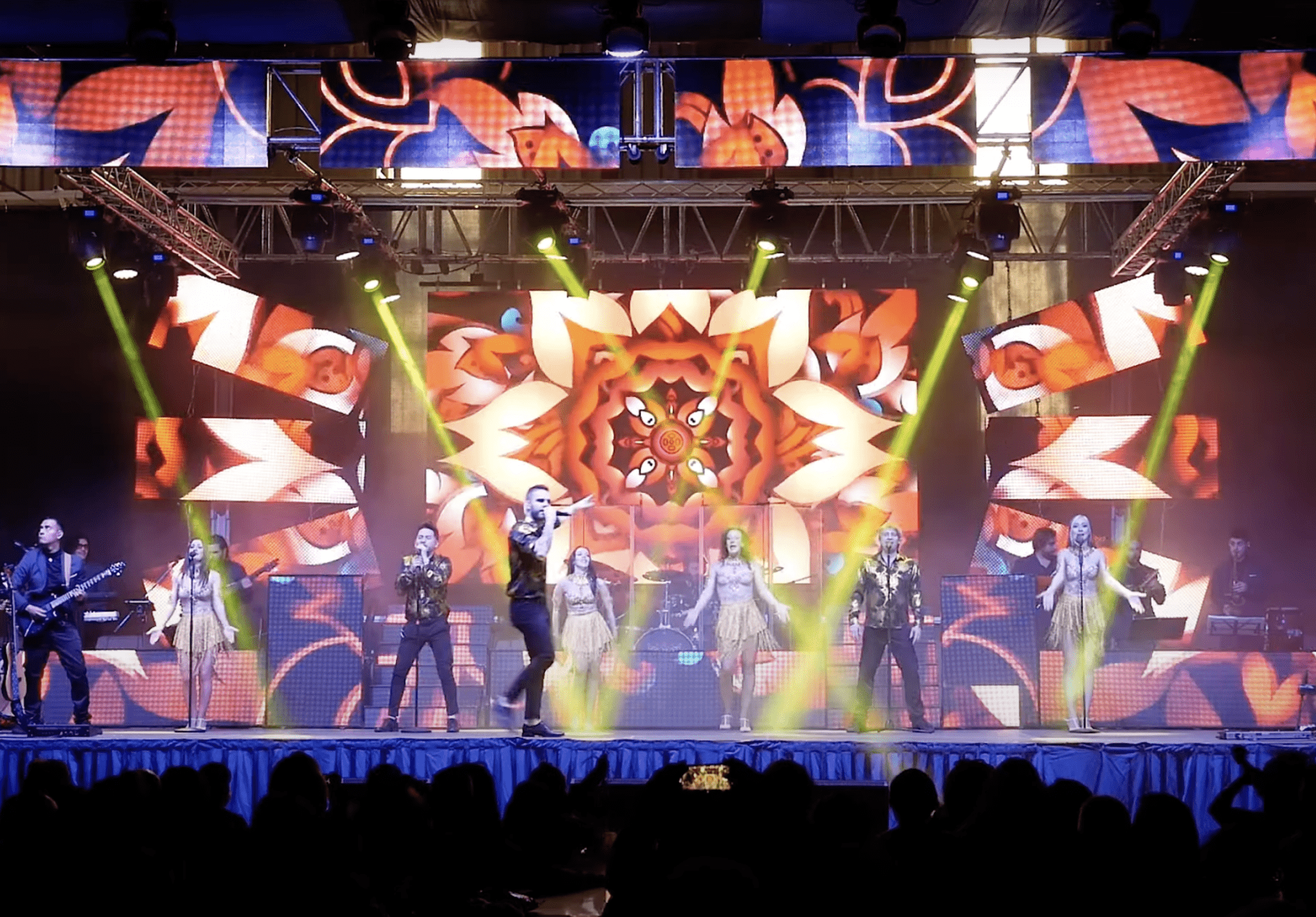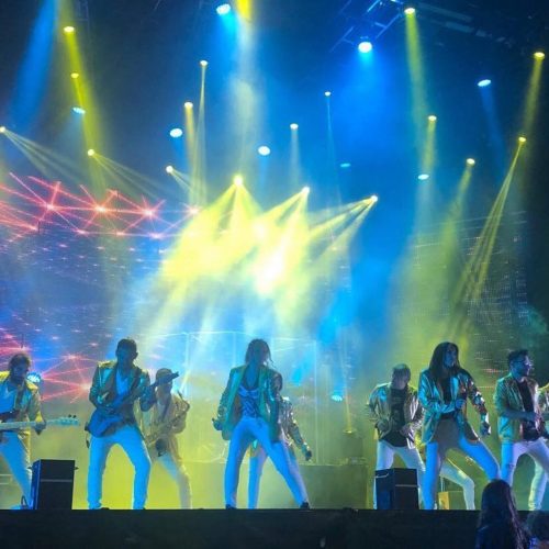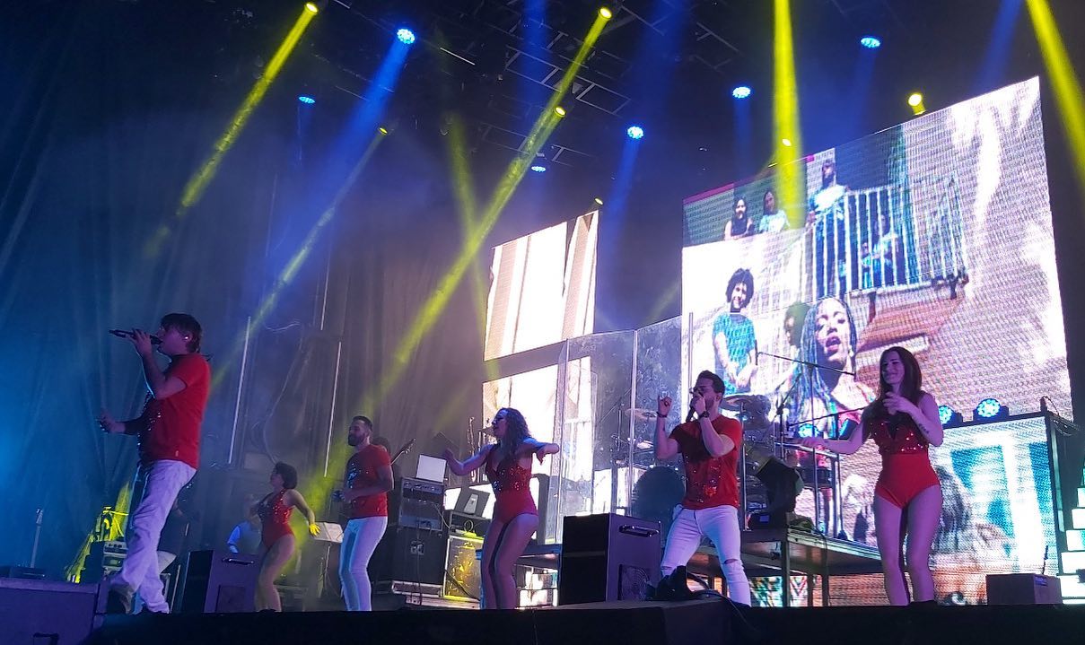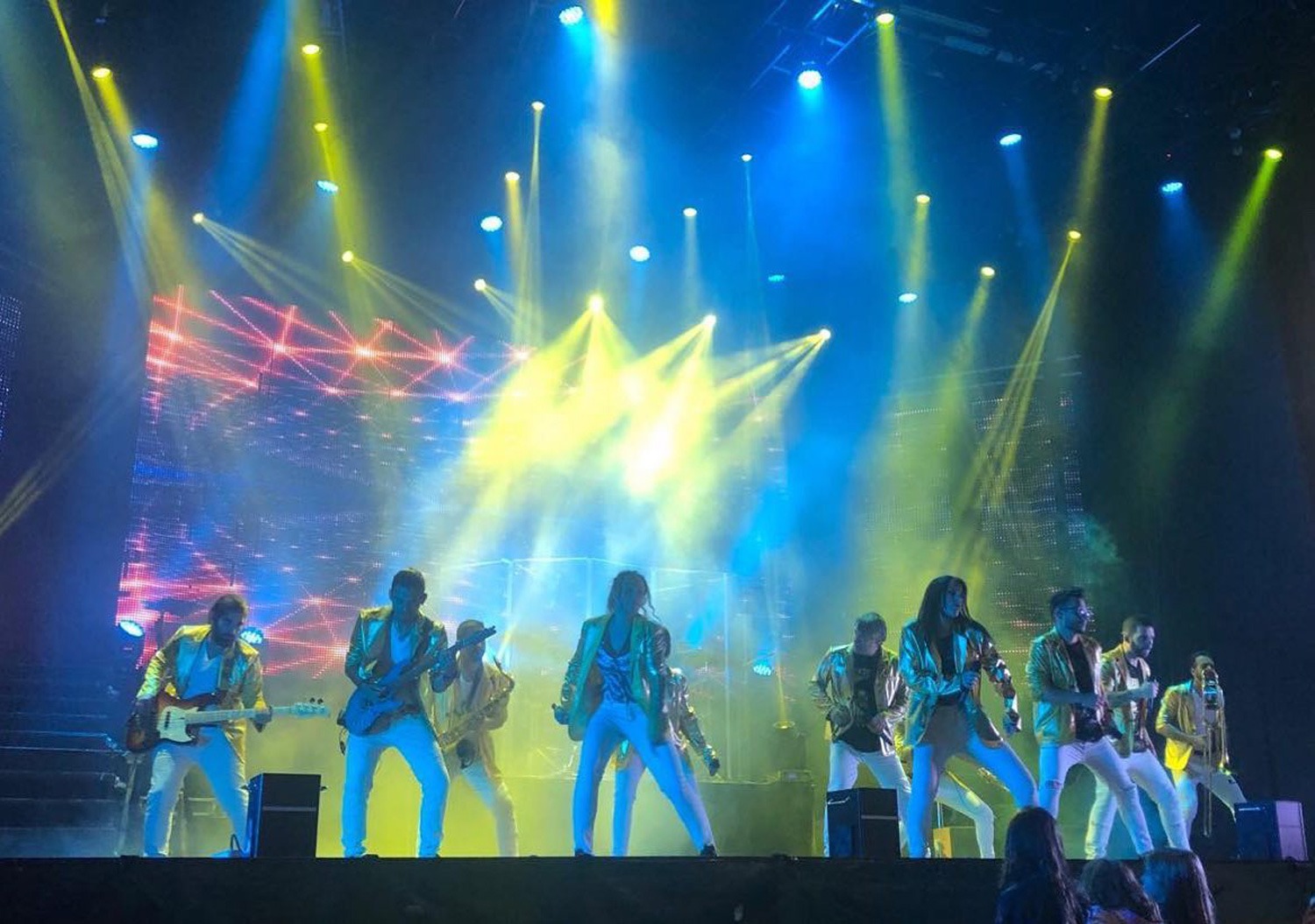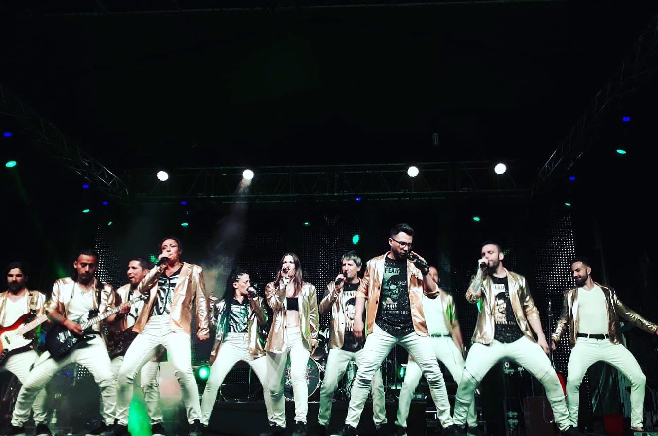 3 Vocalistas masculinos, 2 Vocalistas femeninas, 1 Bailarina acróbata, 1 Bailarín acróbata, 3 Músicos de viento metal (trompeta, saxofón y trombón) y 4 Músicos de cuartero base (Batería, bajo, guitarra y piano).