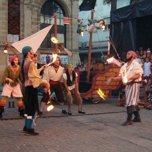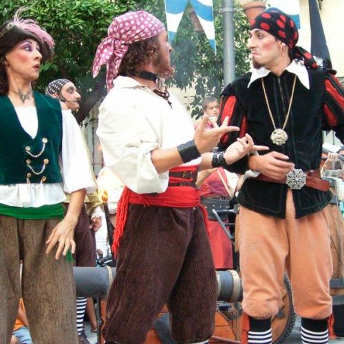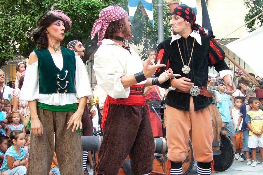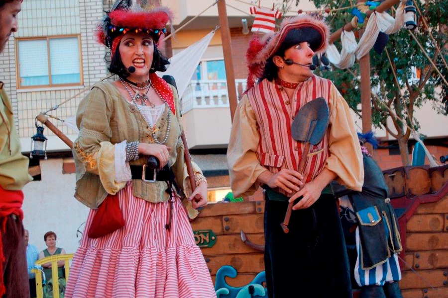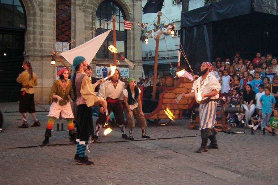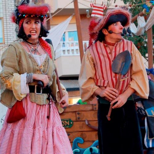 Los Piratas es un trepidante espectáculo que cuenta con música en directo, luchas de espadas, malabares de fuego y efectos con pirotecnia. Se trata de un teatro musical infantil de 1 hora y 15 de duración que se desarrolla en la calle con una escenografía cuidada y profesional.
